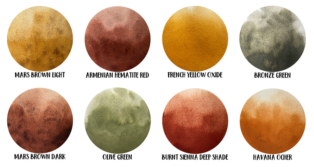 All earth colors and minerals suitable for painting autumn (and portraits!).