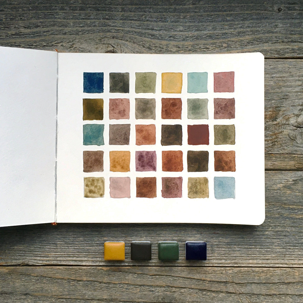 The set includes four colors (all half-pan size) that can be used as separate palette or starting points for a larger palette.