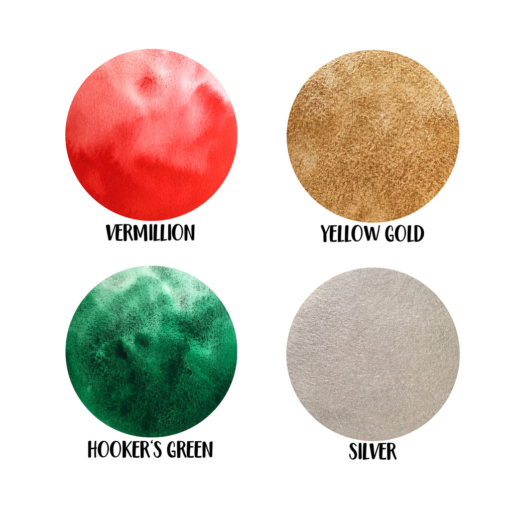 Christmas-Themed Set - 4 Colors & Postcards - 12